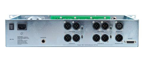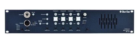 The Clear-Com MS-704 Main Station powers up to four (4) intercom channels with programmable front-panel buttons. High-capacity, fail-safe power supply supports up to 40 RS-701 beltpacks or 10 speaker stations or 12 headset stations; 3 IFB channels, announce button/relay, channel-linking button and Remote Mic Kill switch.