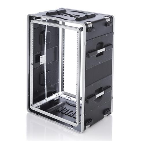 Adjustable interior sliding support on each side of rack adjusts from front to back and up and down for rear support of gear